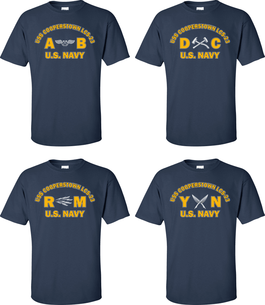 Due to disruptions in supply chains, this design will be embroidered on a Champion, Gildan, Jerzees or comparable brand.Proudly display your ship and rate with our top quality USS COOPERSTOWN LCS-23 Rates t-shirts, sweatshirts, and hoodies. These fine U.S. Navy apparel items will make you the envy of your veteran buddies, or will make a fine gift! Our USS COOPERSTOWN LCS-23 shirts are proudly printed in the USA!