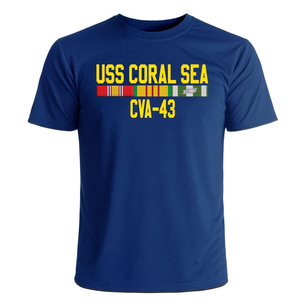 MilitaryBest is proud to offer this U.S. Navy Ship Vietnam Printed T-Shirt. Each design is offered on a Navy Blue T-Shirt. This USS Coral Sea CVA-43 With Vietnam Service Ribbons T-Shirt is proudly printed in the USA. The quality of all of our Military products is guaranteed. Unless there is a defect in workmanship or material, this shirt is unreturnable.A percentage of the sale of each MilitaryBest item is forwarded to the licensing departments of each respective branch of service in support of the MWR (Morale, Welfare, & Recreation) program. These payments are made by either ALL4U LLC or the wholesaler from where the item originated. Our team thanks you for your service and your support of these programs.