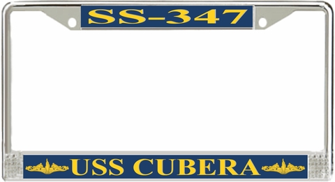 USS Cubera SS-347 License Plate Frame This USS Cubera SS-347 License Plate Frame is proudly made in the USA at our facilities in Scottsboro, Alabama. Each Frame features top and bottom sublimated design strips that are poly coated for a protective gloss finish. Please check your state and local regulations for compatibility of these frames for use on your vehicle.