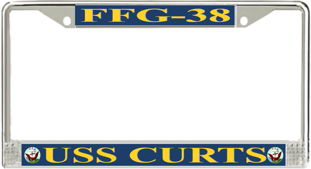 USS Curts FFG-38 License Plate FrameThis USS Curts FFG-38 License Plate Frame is proudly made in the USA at our facilities in Scottsboro, Alabama. Each of our MilitaryBest U.S. Navy Frames feature top and bottom Poly Coated Aluminum strips that are printed using sublimation which gives these quality automobile military frames a beautiful high gloss finish.