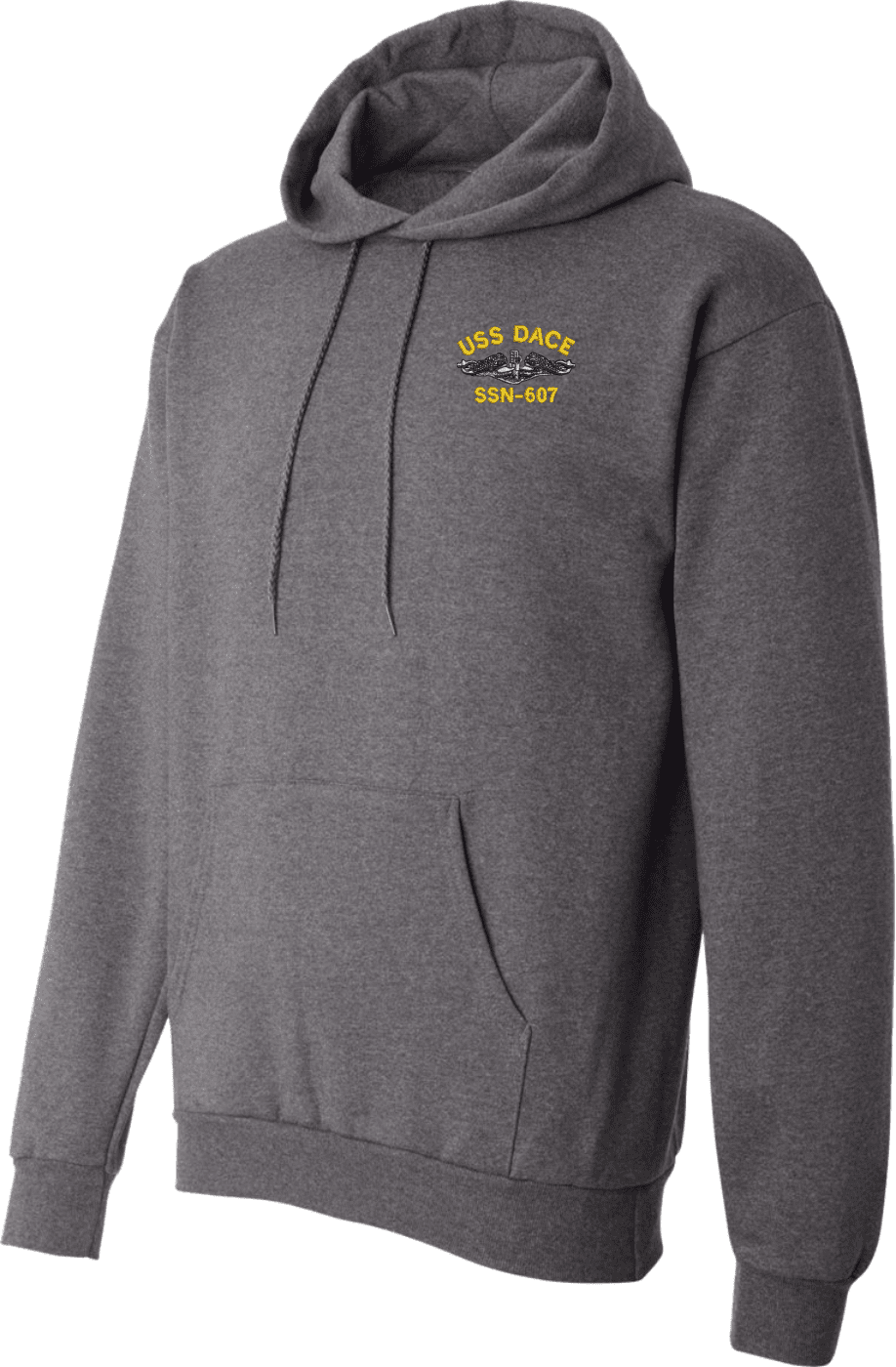 MilitaryBest has expanded its line of apparel with this custom embroidered USS Dace SSN-607 with Dolphins Embroidered Hoodie. Each Hoodie is direct embroidered onto a Champion brand 9.5 oz 50/50 Cotton Poly blend. This Hoodie will make an excellent addition to your wardrobe, or a great gift. Your satisfaction is Guaranteed! These quality hoodies are proudly embroidered at our facilities in Scottsboro, AL. Support the Army MWR program by purchasing only from Licensed Vendors.