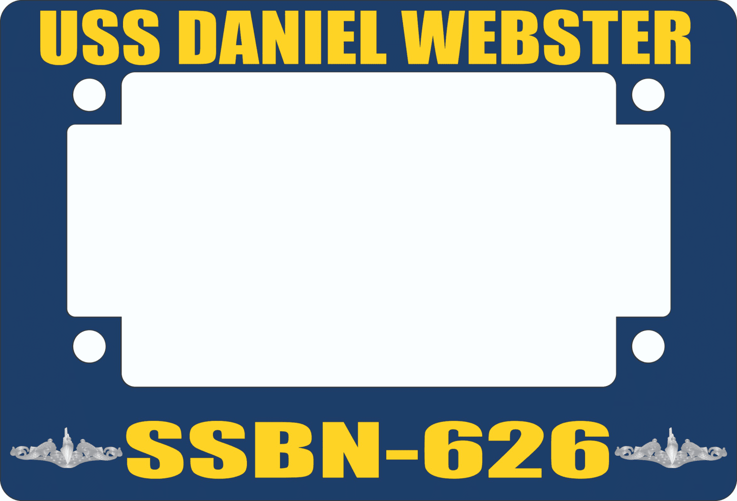 This USS Daniel Webster SSBN-626 Motorcycle Frame is proudly made in the USA at our facilities in Scottsboro, Alabama. Each frame is made with fiberglass reinforced plastic and measures 5-1/16" x 7 7/16. This Motorcycle Frame would make a wonderful addition to your collection or a great gift. Its quality is guaranteed.