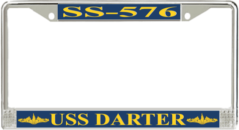 USS Darter SS-576 License Plate Frame This USS Darter SS-576 License Plate Frame is proudly made in the USA at our facilities in Scottsboro, Alabama. Each Frame features top and bottom sublimated design strips that are poly coated for a protective gloss finish. Please check your state and local regulations for compatibility of these frames for use on your vehicle.