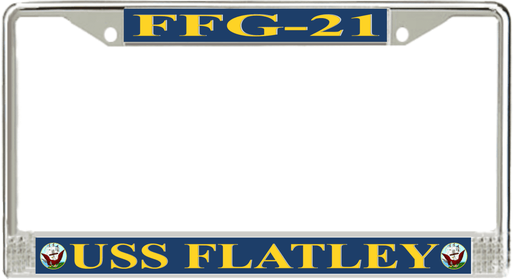 USS Flatley FFG-21 License Plate FrameThis USS Flatley FFG-21 License Plate Frame is proudly made in the USA at our facilities in Scottsboro, Alabama. Each of our MilitaryBest U.S. Navy Frames feature top and bottom Poly Coated Aluminum strips that are printed using sublimation which gives these quality automobile military frames a beautiful high gloss finish.