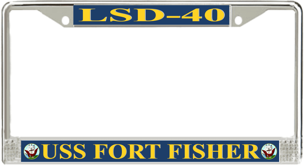 USS Fort Fisher LSD-40 License Plate FrameThis USS Fort Fisher LSD-40 License Plate Frame is proudly made in the USA at our facilities in Scottsboro, Alabama. Each of our MilitaryBest U.S. Navy Frames feature top and bottom Poly Coated Aluminum strips that are printed using sublimation which gives these quality automobile military frames a beautiful high gloss finish.