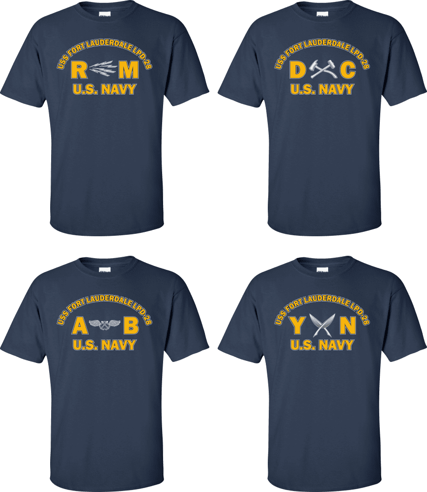 Due to disruptions in supply chains, this design will be embroidered on a Champion, Gildan, Jerzees or comparable brand.Proudly display your ship and rate with our top quality USS FORT LAUDERDALE LPD-28 Rates t-shirts, sweatshirts, and hoodies. These fine U.S. Navy apparel items will make you the envy of your veteran buddies, or will make a fine gift! Our USS FORT LAUDERDALE LPD-28 shirts are proudly printed in the USA!