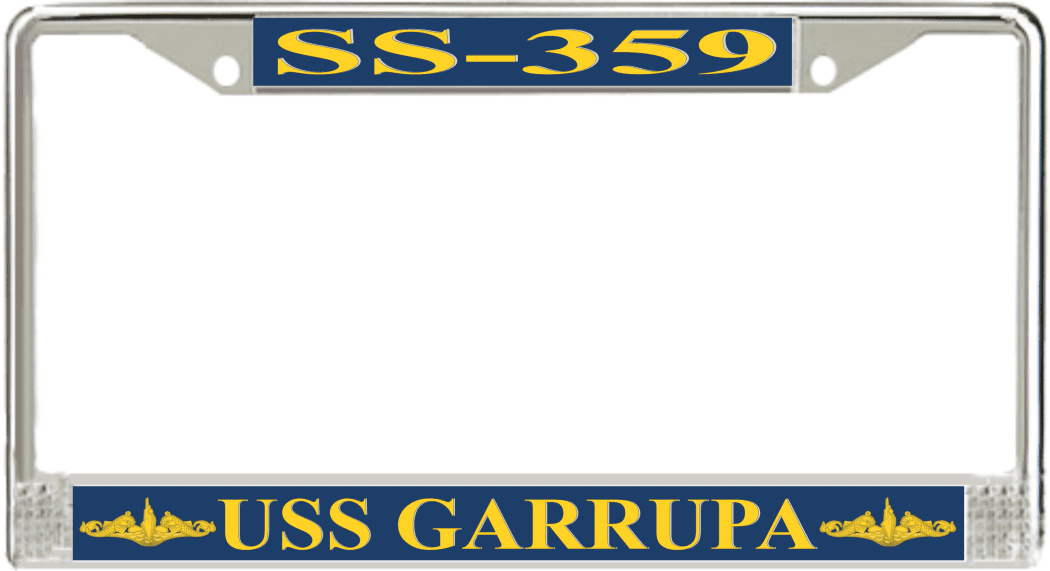 USS Garrupa SS-359 License Plate Frame This USS Garrupa SS-359 License Plate Frame is proudly made in the USA at our facilities in Scottsboro, Alabama. Each Frame features top and bottom sublimated design strips that are poly coated for a protective gloss finish. Please check your state and local regulations for compatibility of these frames for use on your vehicle.