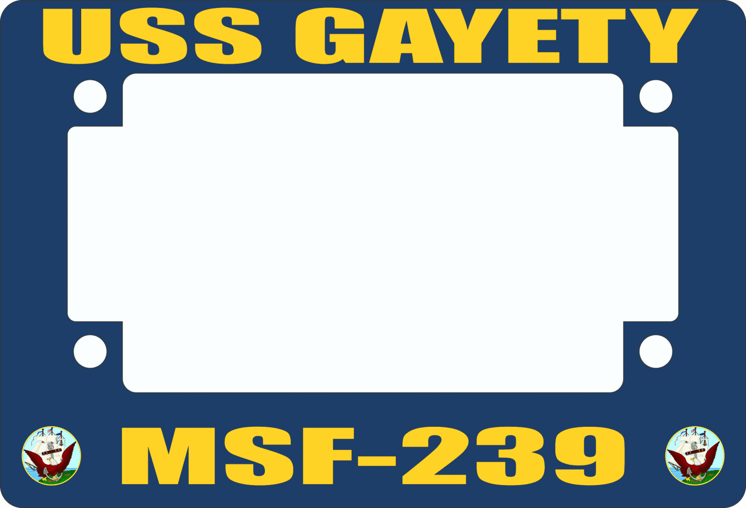 This USS Gayety MSF-239 Motorcycle Frame is proudly made in the USA at our facilities in Scottsboro, Alabama. Each frame is made with fiberglass reinforced plastic and measures 5-1/16" x 7 7/16. This Motorcycle Frame would make a wonderful addition to your collection or a great gift. Its quality is guaranteed.