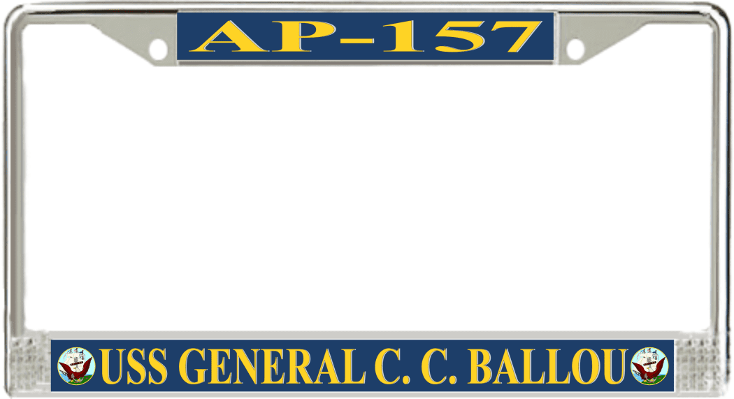 USS General C. C. Ballou AP-157 License Plate FrameUSS General C. C. Ballou AP-157 License Plate FrameUSS General C. C. Ballou AP-157 License Plate Frame