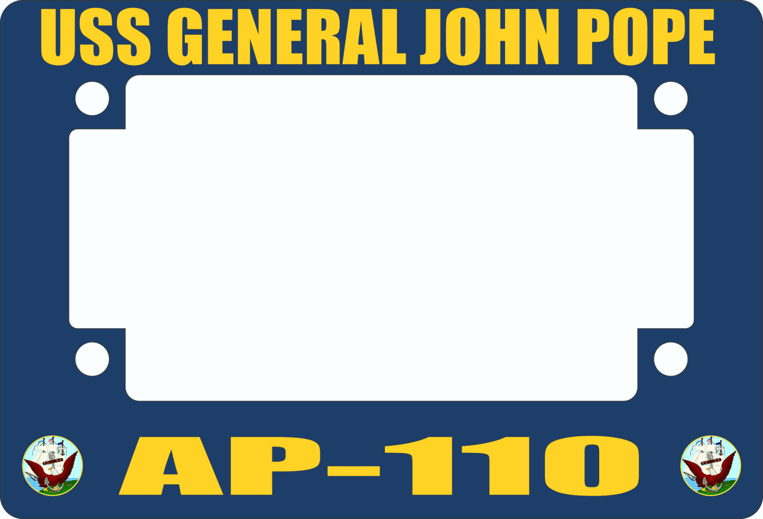 This USS General John Pope AP-110 Motorcycle Frame is proudly made in the USA at our facilities in Scottsboro, Alabama. Each frame is made with fiberglass reinforced plastic and measures 5-1/16" x 7 7/16. This Motorcycle Frame would make a wonderful addition to your collection or a great gift. Its quality is guaranteed.