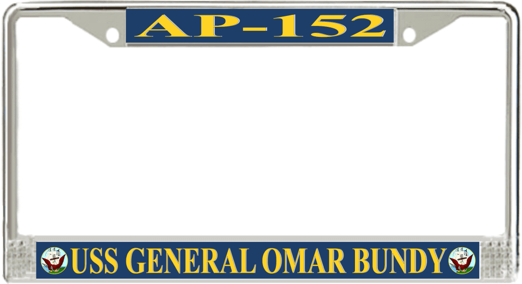 USS General Omar Bundy AP-152 License Plate FrameUSS General Omar Bundy AP-152 License Plate FrameUSS General Omar Bundy AP-152 License Plate Frame