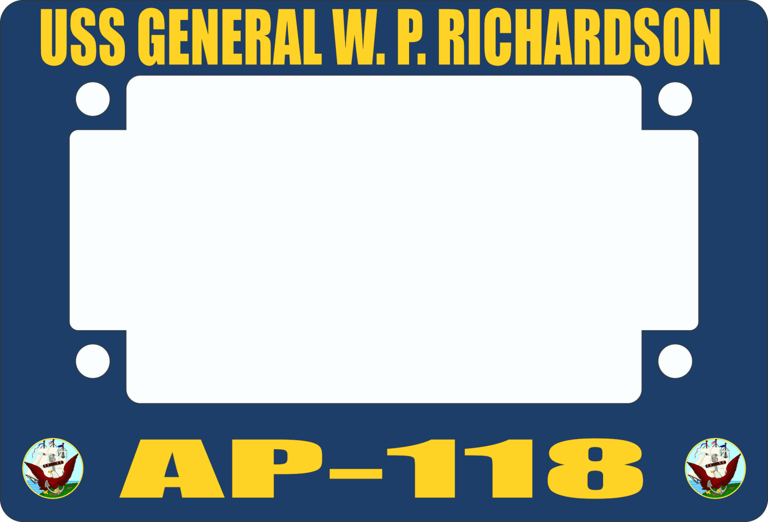 This USS General W. P. Richardson AP-118 Motorcycle Frame is proudly made in the USA at our facilities in Scottsboro, Alabama. Each frame is made with fiberglass reinforced plastic and measures 5-1/16" x 7 7/16. This Motorcycle Frame would make a wonderful addition to your collection or a great gift. Its quality is guaranteed.