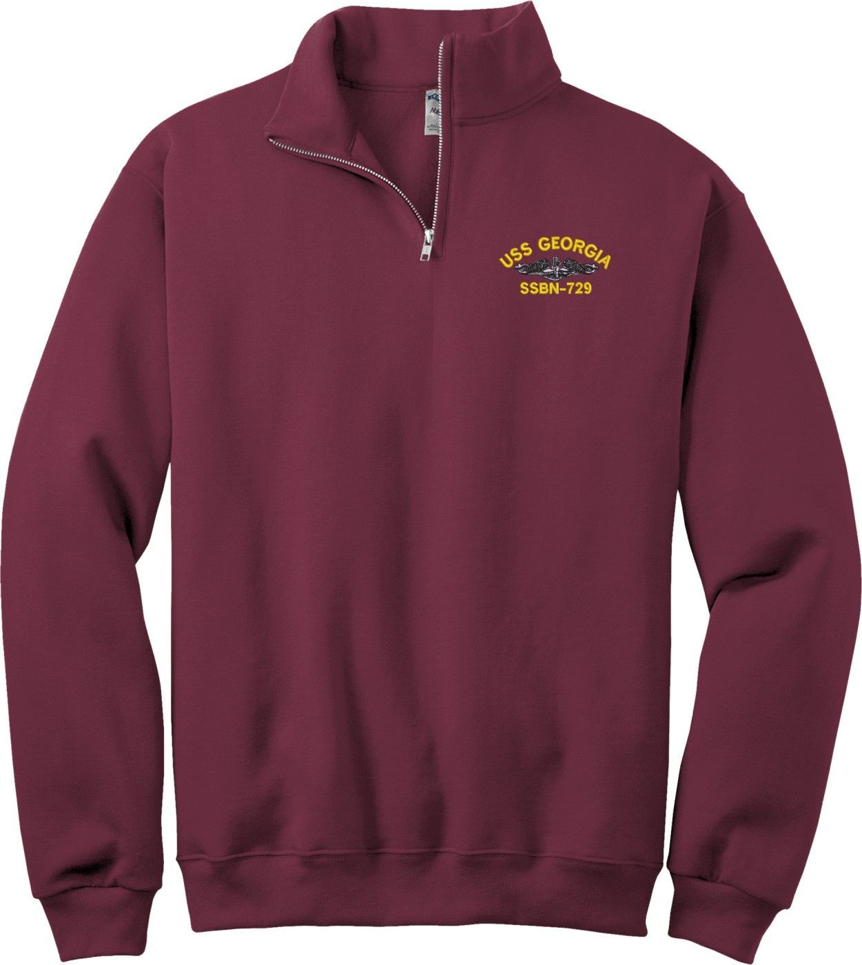 This USS Georgia SSBN-729 with Dolphins Maroon Quarter-Zip Pullover X-Large is an overstock item and is only available for the value price while supplies last. Clearance Items are not eligible for Refunds or Returns,A percentage of the sale of each MilitaryBest item is forwarded to the licensing departments of each respective branch of service in support of the MWR (Morale, Welfare, & Recreation) program. These payments are made by either ALL4U LLC or the wholesaler from where the item originated. Our team thanks you for your service and your support of these programs.