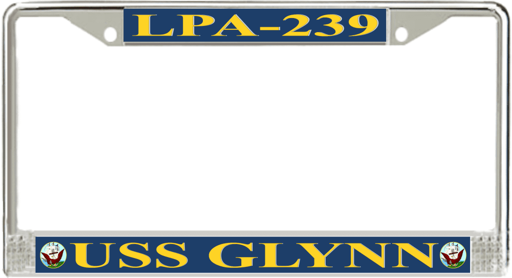 USS Glynn LPA-239 License Plate frameThis USS Glynn LPA-239 License Plate frame is proudly made in the USA at our facilities in Scottsboro, Alabama. Each of our MilitaryBest U.S. Navy Frames feature top and bottom Poly Coated Aluminum strips that are printed using sublimation which gives these quality automobile military frames a beautiful high gloss finish.