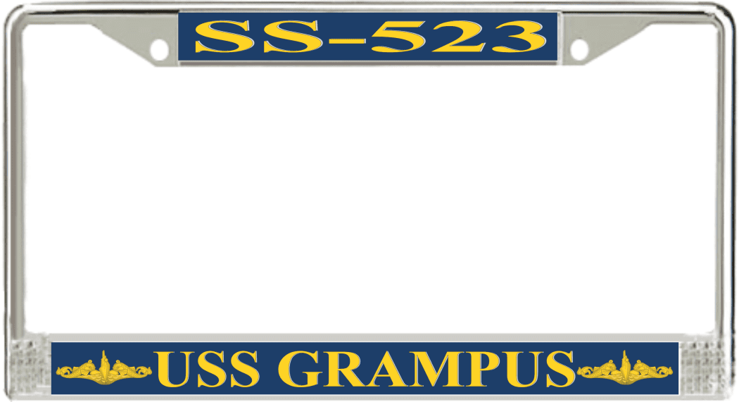 USS Grampus SS-523 License Plate Frame This USS Grampus SS-523 License Plate Frame is proudly made in the USA at our facilities in Scottsboro, Alabama. Each Frame features top and bottom sublimated design strips that are poly coated for a protective gloss finish. Please check your state and local regulations for compatibility of these frames for use on your vehicle.