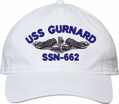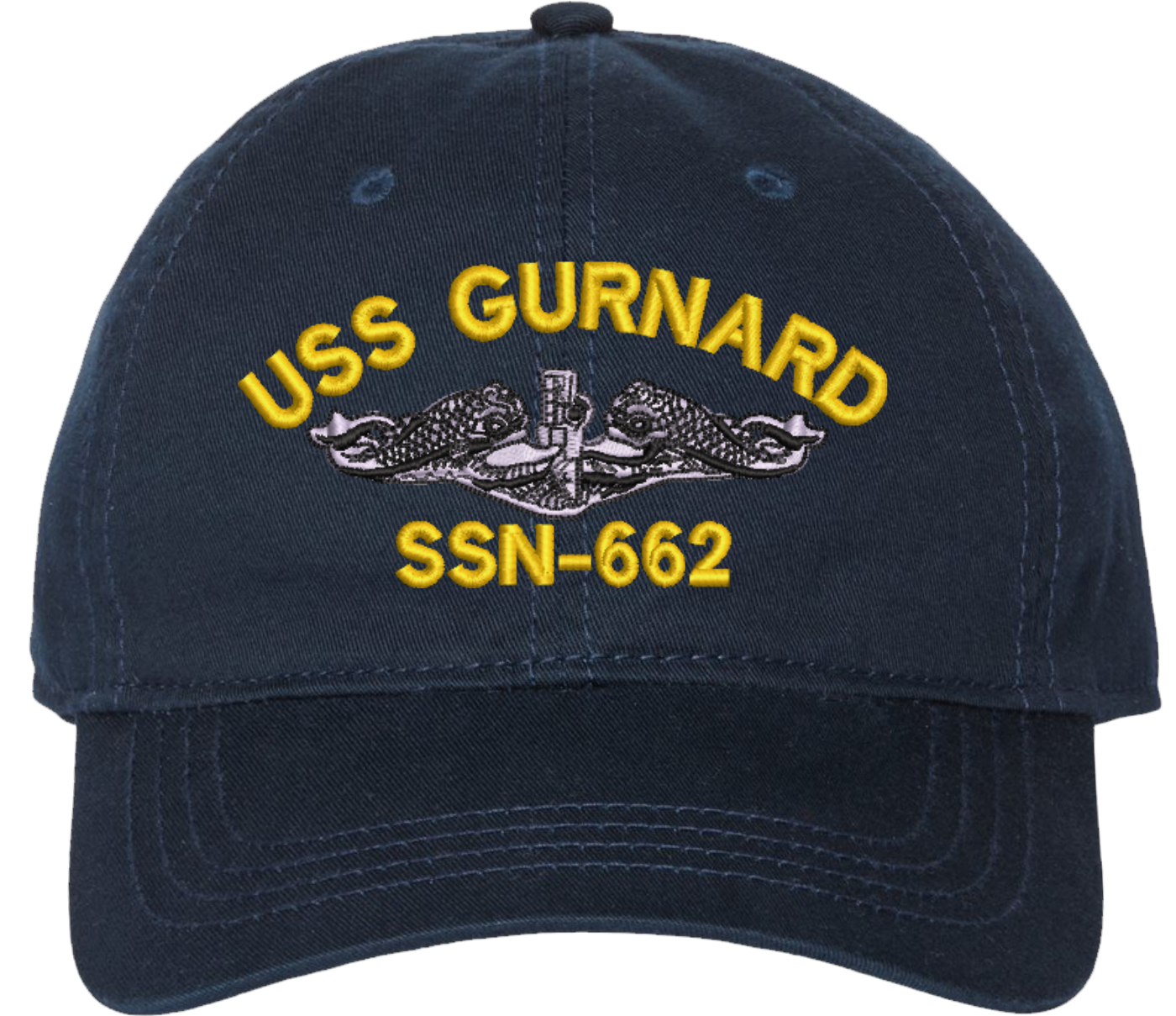 Show your Navy pride with this USS Gurnard SSN-662 with Dolphins Unstructured Dad Cap from MilitaryBest. Crafted from 100% washed chino twill cotton, this six-panel, low-profile cap offers a relaxed and comfortable fit. Featuring high-quality embroidery done in our Scottsboro, Alabama facility, this cap is designed with a pre-curved visor and an adjustable tri-glide buckle closure for a perfect fit. Whether for everyday wear or as a meaningful gift, this cap is a great way to honor your own or a loved one's service.For caps ordered with custom embroidered personalized text please allow an additional 3 to 5 days production time. All custom back text will be embroidered in ALL CAPITAL LETTERS. Caps with back text or eggs are non-returnable unless there is a material defect in the cap.