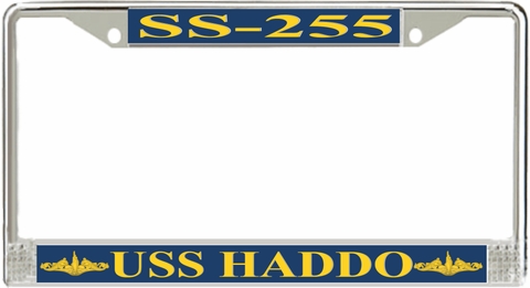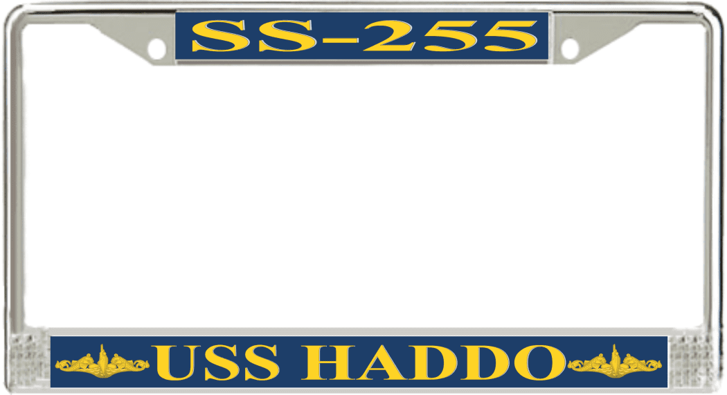 USS Haddo SS-255 License Plate Frame This USS Haddo SS-255 License Plate Frame is proudly made in the USA at our facilities in Scottsboro, Alabama. Each Frame features top and bottom sublimated design strips that are poly coated for a protective gloss finish. Please check your state and local regulations for compatibility of these frames for use on your vehicle.