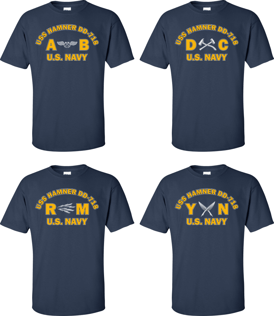 Due to disruptions in supply chains, this design will be embroidered on a Champion, Gildan, Jerzees or comparable brand.Proudly display your ship and rate with our top quality USS HAMNER DD-718 Rates t-shirts, sweatshirts, and hoodies. These fine U.S. Navy apparel items will make you the envy of your veteran buddies, or will make a fine gift! Our USS HAMNER DD-718 shirts are proudly printed in the USA!