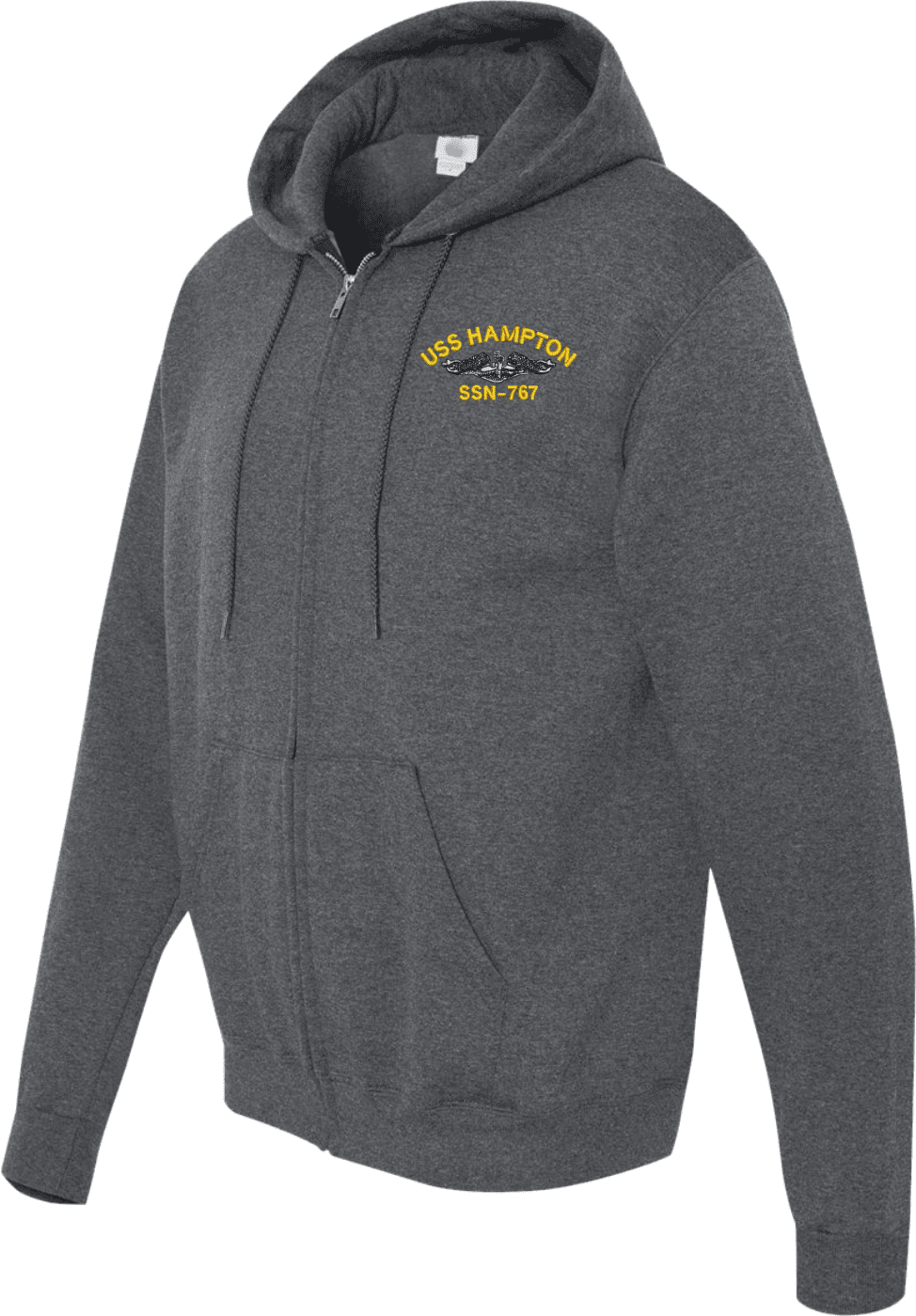 MilitaryBest has expanded its line of apparel with this custom embroidered USS Hampton SSN-767 with Dolphins Embroidered Zippered Hoodie. Each Hoodie is direct embroidered onto a Champion brand 9.5 oz 50/50 Cotton Poly blend. This will make an excellent addition to your wardrobe, or a great gift. Your satisfaction is Guaranteed! These quality zippered hoodies are proudly embroidered at our facilities in Scottsboro, AL. Support the Army MWR program by purchasing only from Licensed Vendors.
