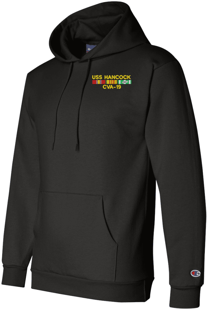 MilitaryBest has expanded its line of apparel with this custom embroidered USS Hancock CVA-19 with Vietnam Service Ribbons Hoodie. Each Hoodie is direct embroidered onto a Champion brand 9.5 oz 50/50 Cotton Poly blend. This Hoodie will make an excellent addition to your wardrobe, or a great gift. Your satisfaction is Guaranteed! This Hoodie is custom embroidered at our facilities in Scottsboro, AL.