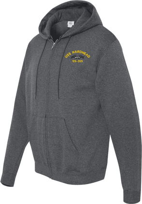 MilitaryBest has expanded its line of apparel with this custom embroidered USS Hardhead SS-365 with Dolphins Embroidered Zippered Hoodie. Each Hoodie is direct embroidered onto a Champion brand 9.5 oz 50/50 Cotton Poly blend. This will make an excellent addition to your wardrobe, or a great gift. Your satisfaction is Guaranteed! These quality zippered hoodies are proudly embroidered at our facilities in Scottsboro, AL. Support the Army MWR program by purchasing only from Licensed Vendors.