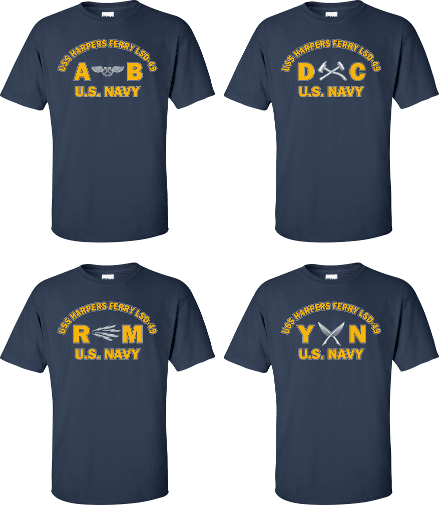 Due to disruptions in supply chains, this design will be embroidered on a Champion, Gildan, Jerzees or comparable brand.Proudly display your ship and rate with our top quality USS HARPERS FERRY LSD-49 Rates t-shirts, sweatshirts, and hoodies. These fine U.S. Navy apparel items will make you the envy of your veteran buddies, or will make a fine gift! Our USS HARPERS FERRY LSD-49 shirts are proudly printed in the USA!