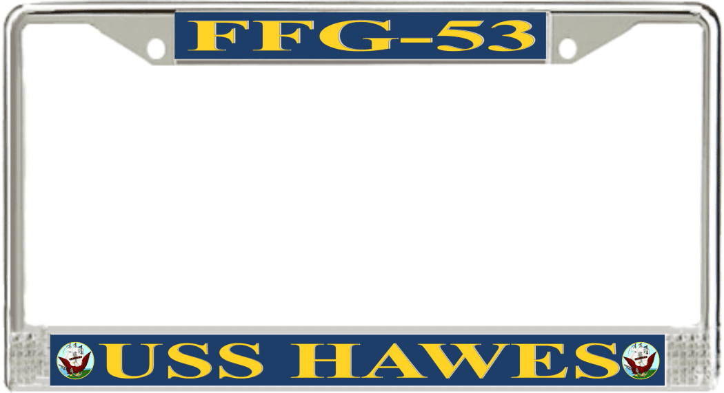 USS Hawes FFG-53 License Plate FrameThis USS Hawes FFG-53 License Plate Frame is proudly made in the USA at our facilities in Scottsboro, Alabama. Each of our MilitaryBest U.S. Navy Frames feature top and bottom Poly Coated Aluminum strips that are printed using sublimation which gives these quality automobile military frames a beautiful high gloss finish.