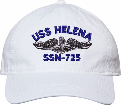 Show your Navy pride with this USS Helena SSN-725 with Dolphins Unstructured Dad Cap from MilitaryBest. Crafted from 100% washed chino twill cotton, this six-panel, low-profile cap offers a relaxed and comfortable fit. Featuring high-quality embroidery done in our Scottsboro, Alabama facility, this cap is designed with a pre-curved visor and an adjustable tri-glide buckle closure for a perfect fit. Whether for everyday wear or as a meaningful gift, this cap is a great way to honor your own or a loved one's service.For caps ordered with custom embroidered personalized text please allow an additional 3 to 5 days production time. All custom back text will be embroidered in ALL CAPITAL LETTERS. Caps with back text or eggs are non-returnable unless there is a material defect in the cap.