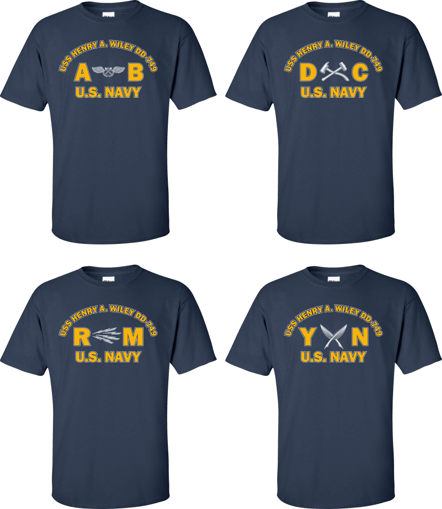 Due to disruptions in supply chains, this design will be embroidered on a Champion, Gildan, Jerzees or comparable brand.Proudly display your ship and rate with our top quality USS HENRY A. WILEY DD-749 Rates t-shirts, sweatshirts, and hoodies. These fine U.S. Navy apparel items will make you the envy of your veteran buddies, or will make a fine gift! Our USS HENRY A. WILEY DD-749 shirts are proudly printed in the USA!
