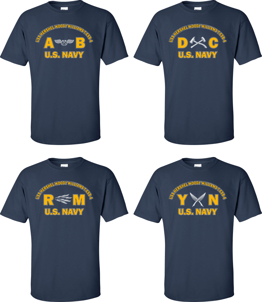 Due to disruptions in supply chains, this design will be embroidered on a Champion, Gildan, Jerzees or comparable brand.Proudly display your ship and rate with our top quality USS HERSHEL WOODY WILLIAMS T-ESB-4 Rates t-shirts, sweatshirts, and hoodies. These fine U.S. Navy apparel items will make you the envy of your veteran buddies, or will make a fine gift! Our USS HERSHEL WOODY WILLIAMS T-ESB-4 shirts are proudly printed in the USA!