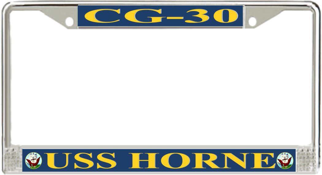 USS Horne CG-30 License Plate FrameThis USS Horne CG-30 License Plate Frame is proudly made in the USA at our facilities in Scottsboro, Alabama. Each of our MilitaryBest U.S. Navy Frames feature top and bottom Poly Coated Aluminum strips that are printed using sublimation which gives these quality automobile military frames a beautiful high gloss finish.