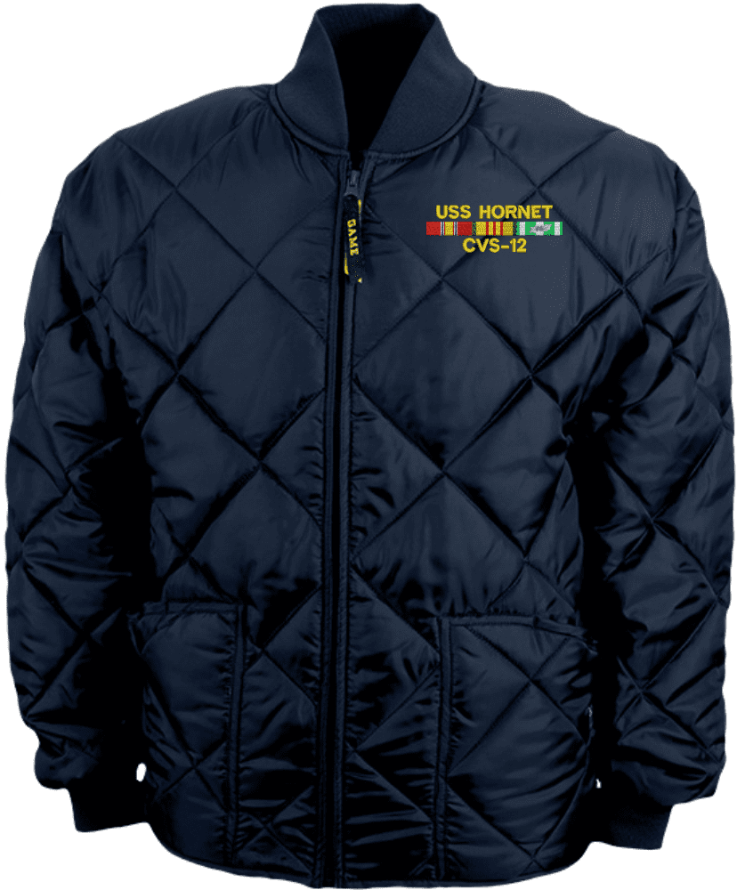 MilitaryBest is proud to offer this quality USS Hornet CVS-12 with Vietnam Service Ribbons Bravest Jacket. This Game Sportswear Jacket will make an excellent addition to your wardrobe or a quality gift. This Jacket is custom embroidered at our facilities in Scottsboro, Alabama.Features: