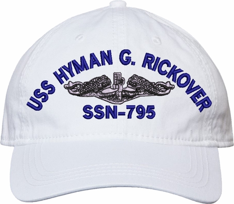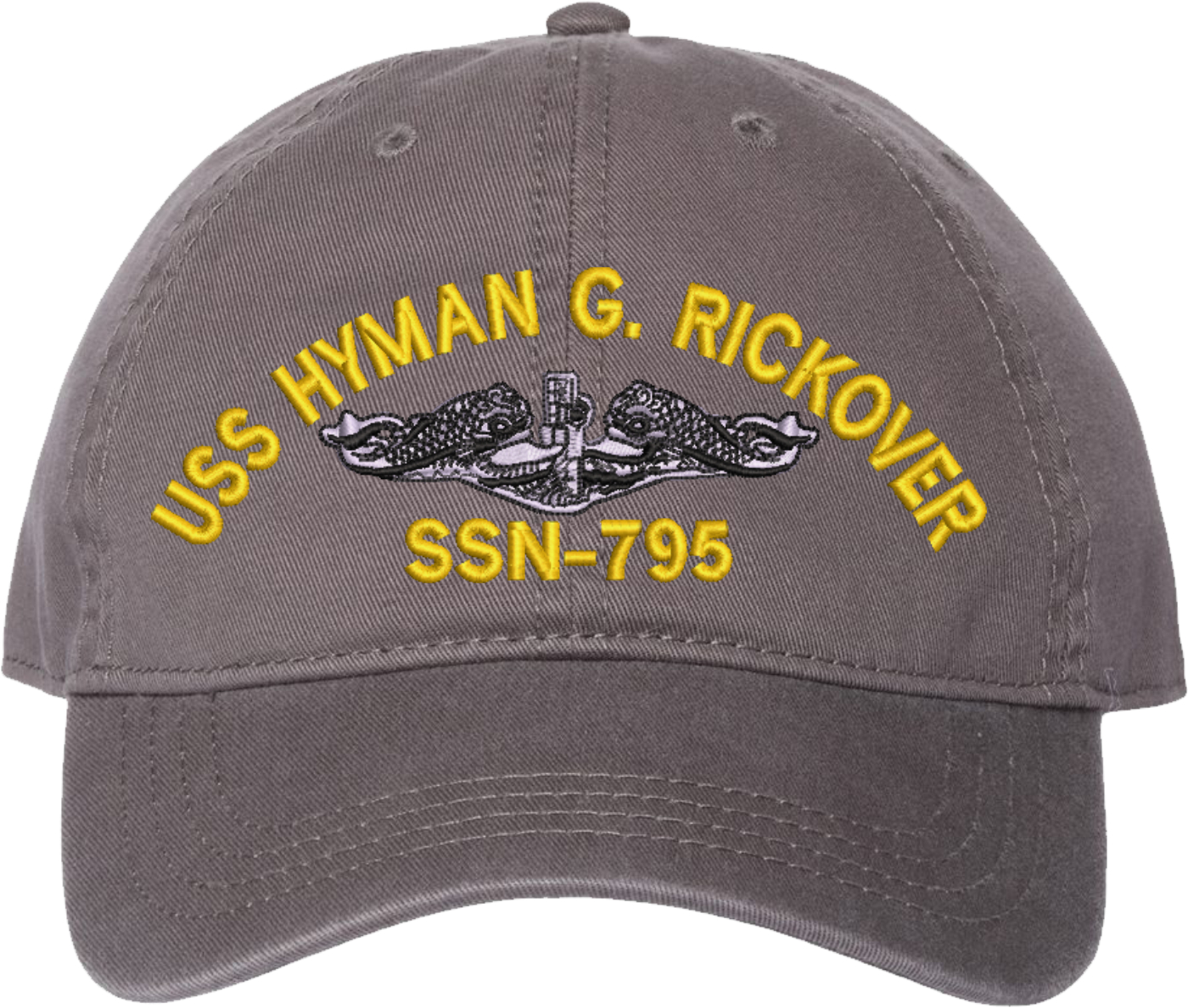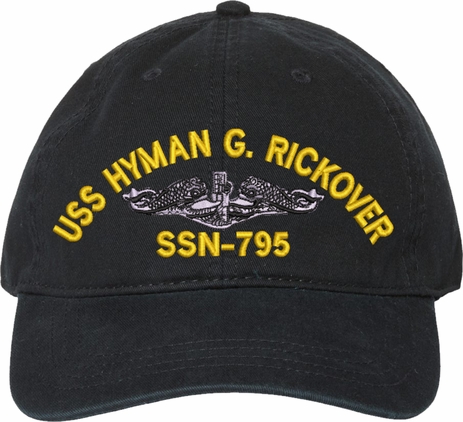 Show your Navy pride with this USS Hyman G Rickover SSN-795 with Dolphins Unstructured Dad Cap from MilitaryBest. Crafted from 100% washed chino twill cotton, this six-panel, low-profile cap offers a relaxed and comfortable fit. Featuring high-quality embroidery done in our Scottsboro, Alabama facility, this cap is designed with a pre-curved visor and an adjustable tri-glide buckle closure for a perfect fit. Whether for everyday wear or as a meaningful gift, this cap is a great way to honor your own or a loved one's service.For caps ordered with custom embroidered personalized text please allow an additional 3 to 5 days production time. All custom back text will be embroidered in ALL CAPITAL LETTERS. Caps with back text or eggs are non-returnable unless there is a material defect in the cap.