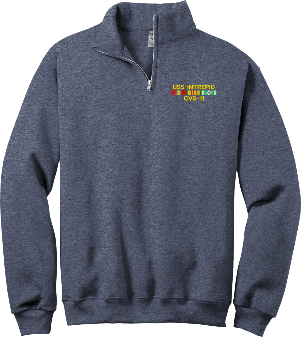 MilitaryBest is proud to offer this USS Intrepid CVS-11 with Vietnam Service Ribbons Quarter-Zip Pullover. This quality shirt is embroidered by our MilitaryBest team in Northeast Alabama.PRODUCT FEATURES