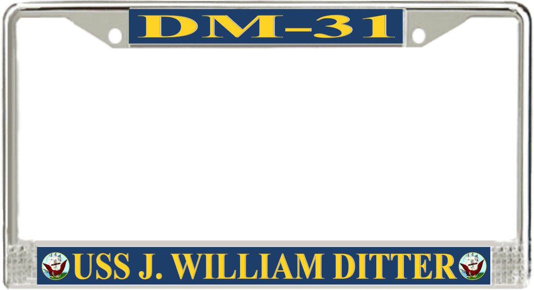 USS J. William Ditter DM-31 License Plate FrameThis USS J. William Ditter DM-31 License Plate Frame is proudly made in the USA at our facilities in Scottsboro, Alabama. Each of our MilitaryBest U.S. Navy Frames feature top and bottom Poly Coated Aluminum strips that are printed using sublimation which gives these quality automobile military frames a beautiful high gloss finish.