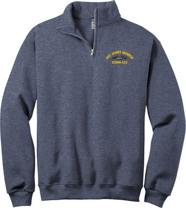 MilitaryBest is proud to offer this USS James Monroe SSBN-622 with Dolphins Embroidered Quarter-Zip Pullover. This quality shirt is embroidered by our MilitaryBest team in Northeast Alabama.PRODUCT FEATURES