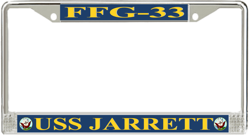 USS Jarrett FFG-33 License Plate FrameThis USS Jarrett FFG-33 License Plate Frame is proudly made in the USA at our facilities in Scottsboro, Alabama. Each of our MilitaryBest U.S. Navy Frames feature top and bottom Poly Coated Aluminum strips that are printed using sublimation which gives these quality automobile military frames a beautiful high gloss finish.