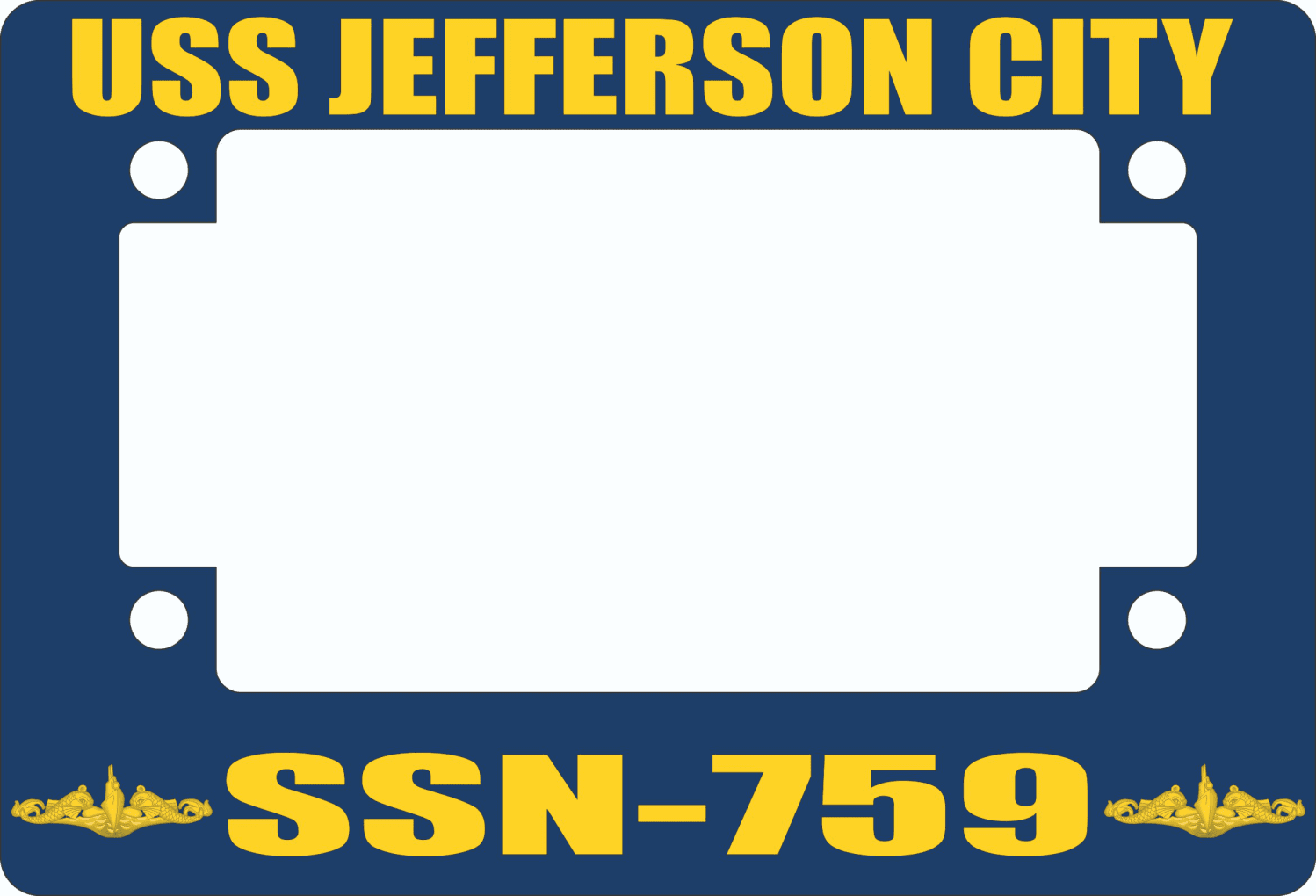 This USS Jefferson City SSN-759 Motorcycle Frame is proudly made in the USA at our facilities in Scottsboro, Alabama. Each frame is made with fiberglass reinforced plastic and measures 5-1/16" x 7 7/16. This Motorcycle Frame would make a wonderful addition to your collection or a great gift. Its quality is guaranteed.