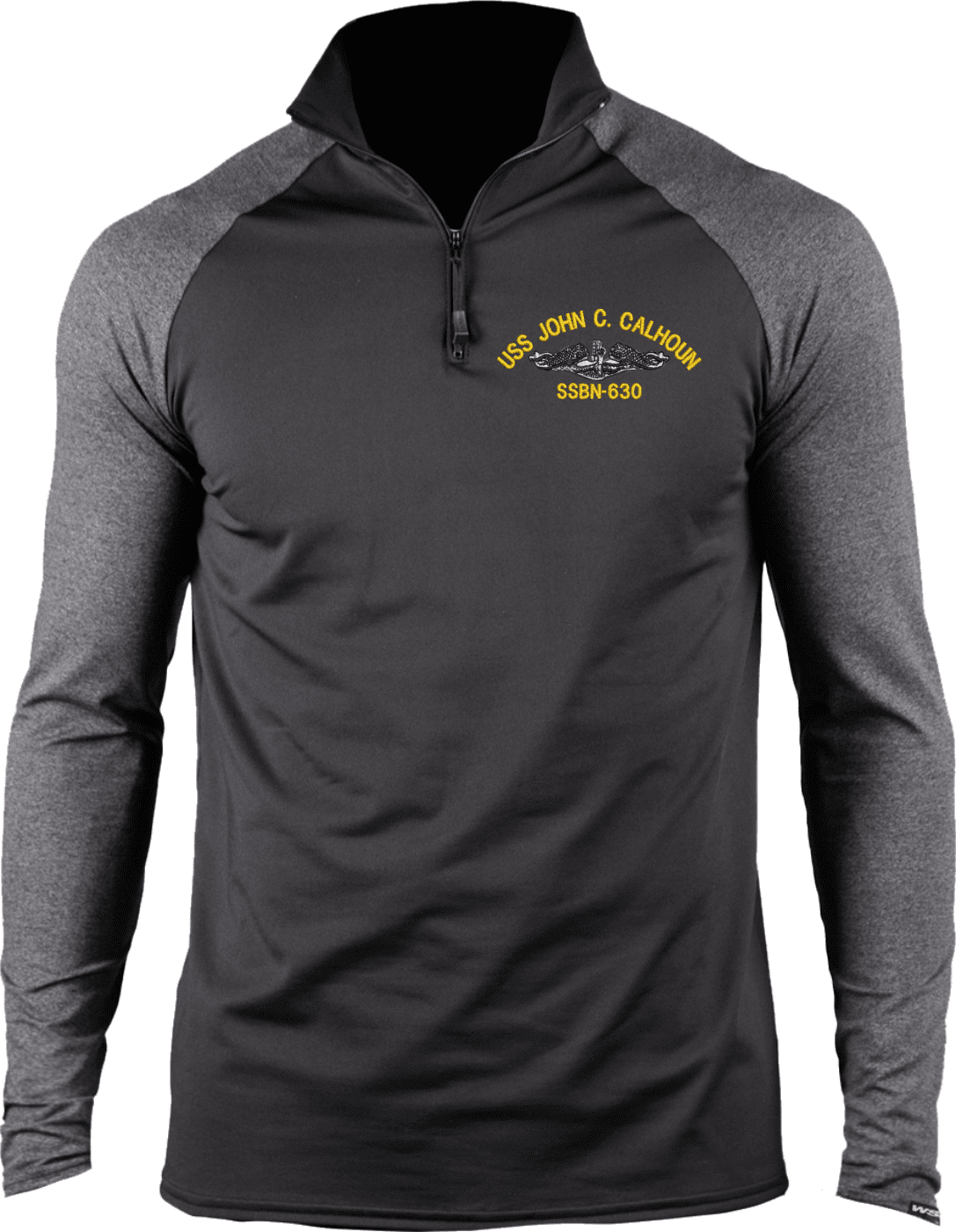 Striving to provide you with the highest quality apparel made in the United States, MilitaryBest is proud to offer this USS John C Calhoun SSBN-630 with Dolphins Embroidered ProWikMax 2-Tone 1/4 Zip Knit Long Sleeve Shirt. Manufactured by WSI Sportswear in Minnesota and Embroidered by us here at MilitaryBest in Alabama; this shirt is 100% Made in the USA! We aim to provide you with soft, comfortable, dry-fit, American-made clothing that allows you to be your best. ProWikMax is 92% Polyester, 8% Spandex, and made to be both durable and flattering.*For washing we recommend machine wash cold with like colors, and line dry.PRODUCT FEATURES