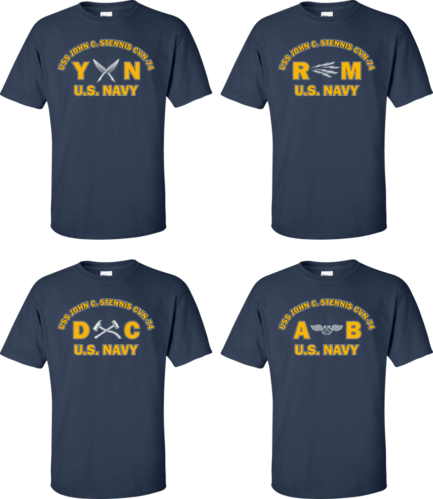 Due to disruptions in supply chains, this design will be embroidered on a Champion, Gildan, Jerzees or comparable brand.Proudly display your ship and rate with our top quality USS JOHN C. STENNIS CVN-74 Rates t-shirts, sweatshirts, and hoodies. These fine U.S. Navy apparel items will make you the envy of your veteran buddies, or will make a fine gift! Our USS JOHN C. STENNIS CVN-74 shirts are proudly printed in the USA!