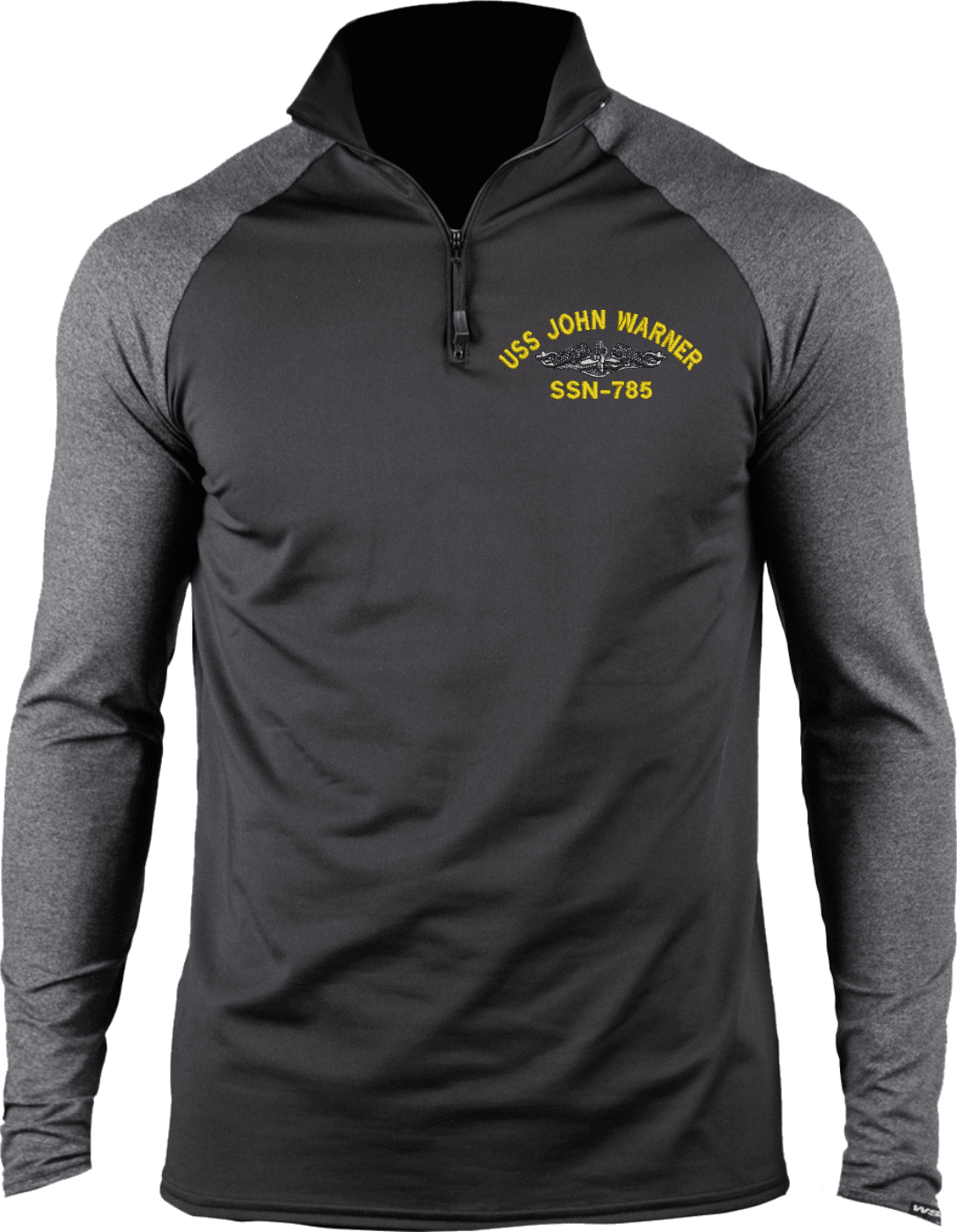 Striving to provide you with the highest quality apparel made in the United States, MilitaryBest is proud to offer this USS John Warner SSN-785 with Dolphins Embroidered ProWikMax 2-Tone 1/4 Zip Knit Long Sleeve Shirt. Manufactured by WSI Sportswear in Minnesota and Embroidered by us here at MilitaryBest in Alabama; this shirt is 100% Made in the USA! We aim to provide you with soft, comfortable, dry-fit, American-made clothing that allows you to be your best. ProWikMax is 92% Polyester, 8% Spandex, and made to be both durable and flattering.*For washing we recommend machine wash cold with like colors, and line dry.PRODUCT FEATURES