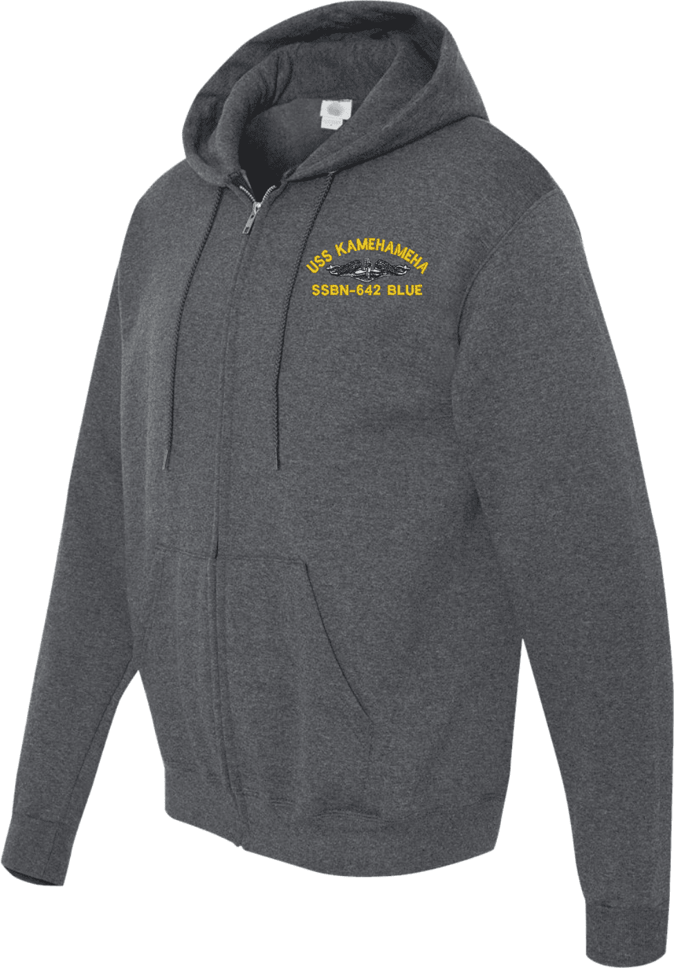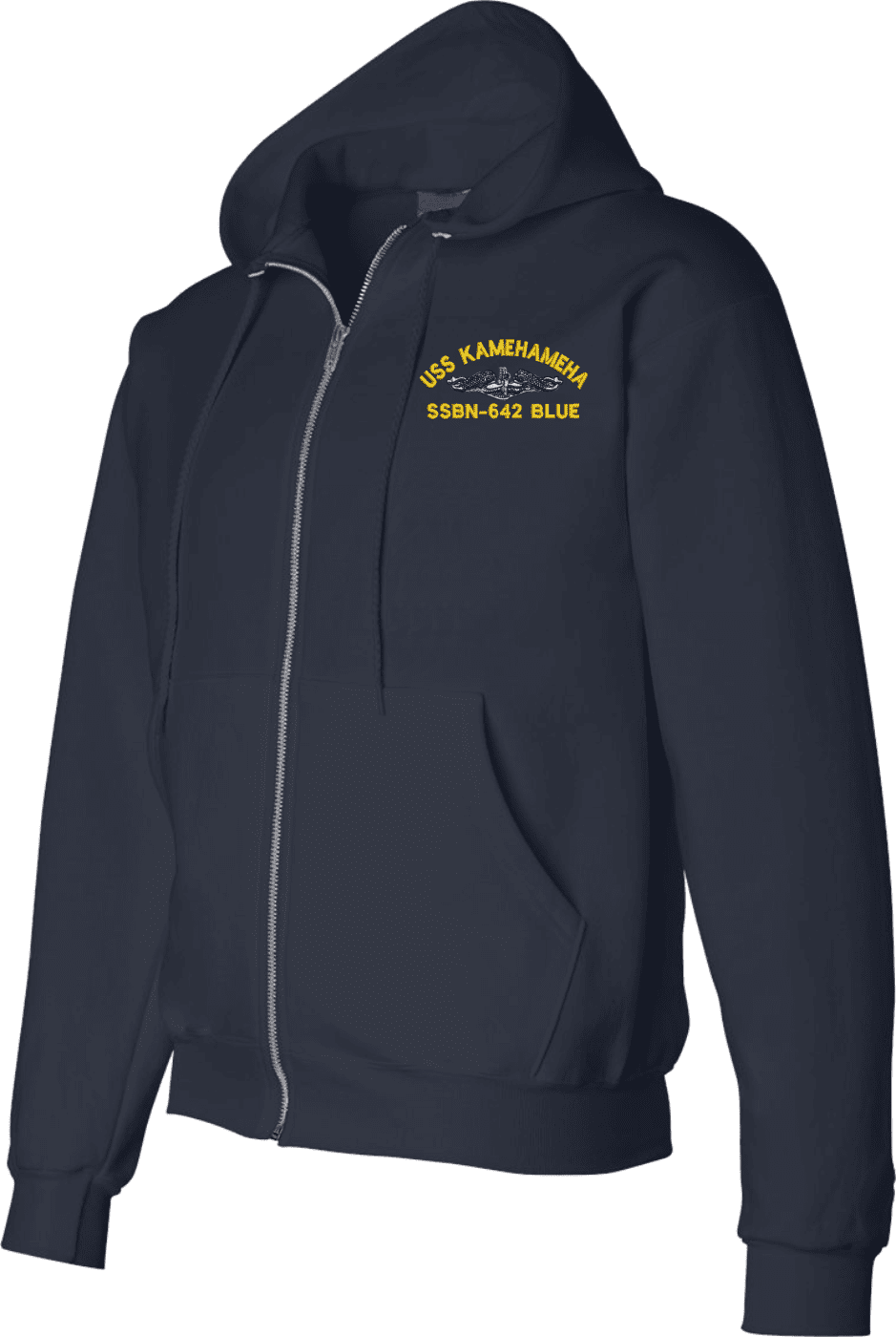 MilitaryBest has expanded its line of apparel with this custom embroidered USS Kamehameha SSBN-642 with Dolphins Embroidered Zippered Hoodie. Each Hoodie is direct embroidered onto a Champion brand 9.5 oz 50/50 Cotton Poly blend. This will make an excellent addition to your wardrobe, or a great gift. Your satisfaction is Guaranteed! These quality zippered hoodies are proudly embroidered at our facilities in Scottsboro, AL. Support the Army MWR program by purchasing only from Licensed Vendors.