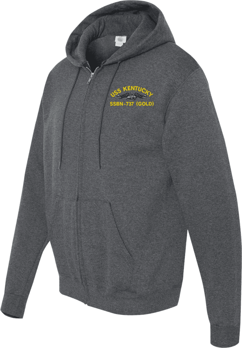 MilitaryBest has expanded its line of apparel with this custom embroidered USS Kentucky SSBN-737 -GOLD- with Dolphins Embroidered Zippered Hoodie. Each Hoodie is direct embroidered onto a Champion brand 9.5 oz 50/50 Cotton Poly blend. This will make an excellent addition to your wardrobe, or a great gift. Your satisfaction is Guaranteed! These quality zippered hoodies are proudly embroidered at our facilities in Scottsboro, AL. Support the Army MWR program by purchasing only from Licensed Vendors.