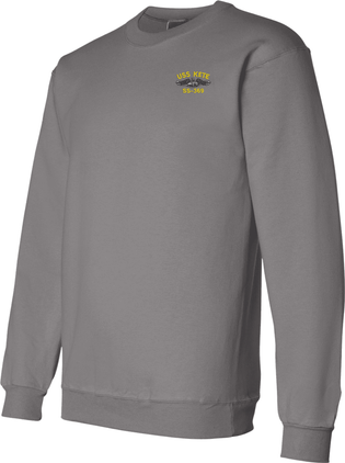 MilitaryBest has expanded its line of apparel with this custom embroidered USS Kete Ss 369 SS-369 with Dolphins Embroidered Sweatshirt. This Sweatshirt will make an excellent addition to your wardrobe, or a great gift. Your satisfaction is Guaranteed! These quality sweatshirts are proudly embroidered at our facilities in Scottsboro, AL. Support the Army MWR program by purchasing only from Licensed Vendors.