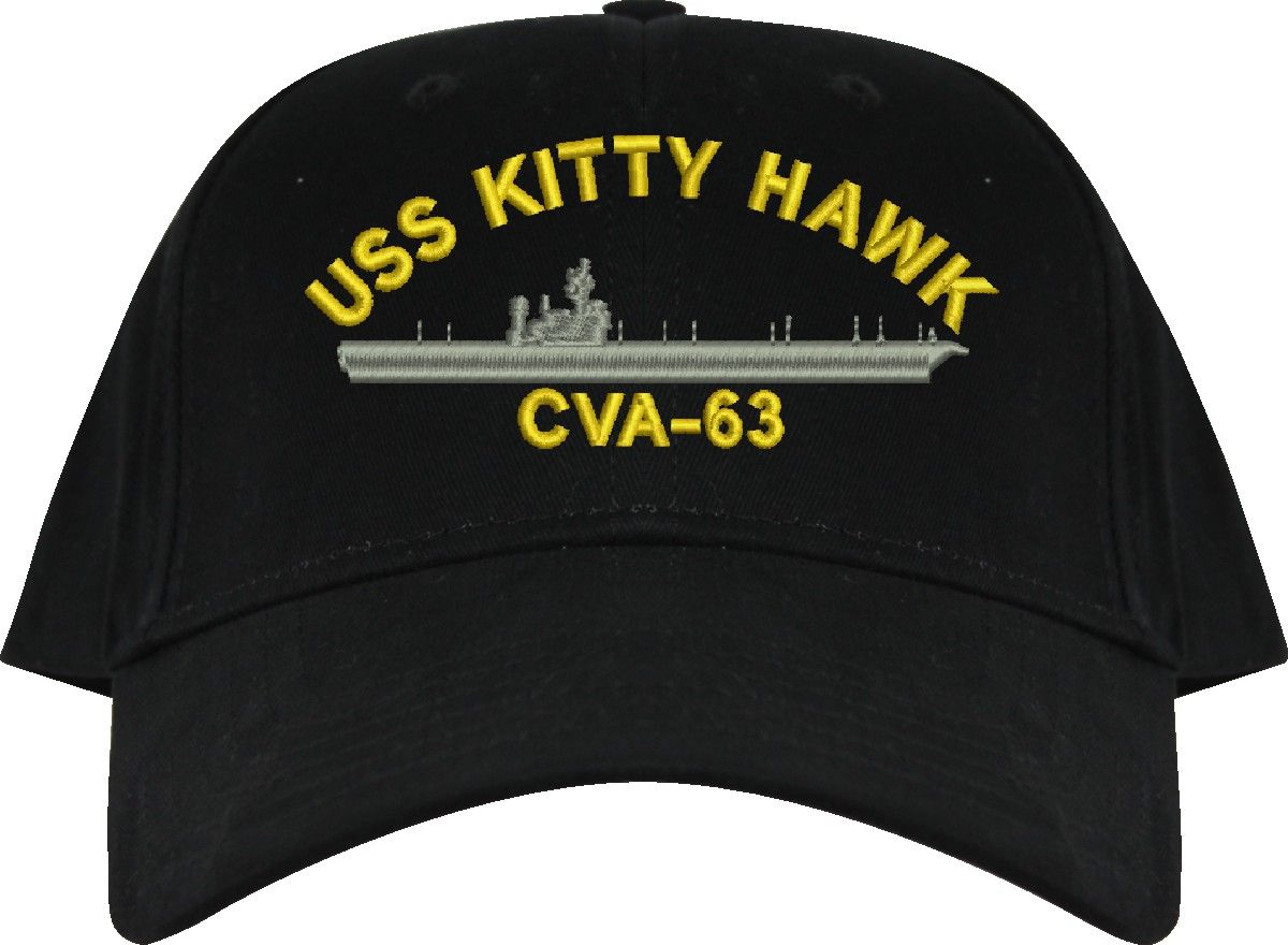 This USS Kitty Hawk CVA-63 Black Low Profile Cap (Imported) is an overstock item and is only available for the value price while supplies last. Clearance Items are not eligible for Refunds or Returns,A percentage of the sale of each MilitaryBest item is forwarded to the licensing departments of each respective branch of service in support of the MWR (Morale, Welfare, & Recreation) program. These payments are made by either ALL4U LLC or the wholesaler from where the item originated. Our team thanks you for your service and your support of these programs.