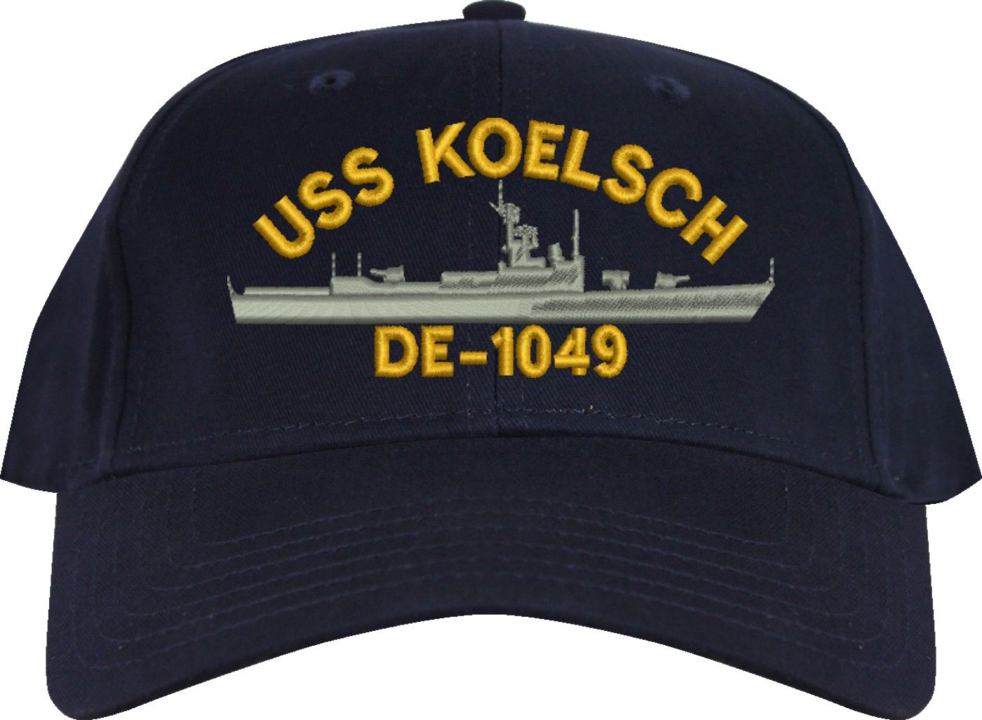 This USS Koelsch DE-1049 Navy Blue Lower Profile Cap (Imported) is an overstock item and is only available for the value price while supplies last. Clearance Items are not eligible for Refunds or Returns,A percentage of the sale of each MilitaryBest item is forwarded to the licensing departments of each respective branch of service in support of the MWR (Morale, Welfare, & Recreation) program. These payments are made by either ALL4U LLC or the wholesaler from where the item originated. Our team thanks you for your service and your support of these programs.