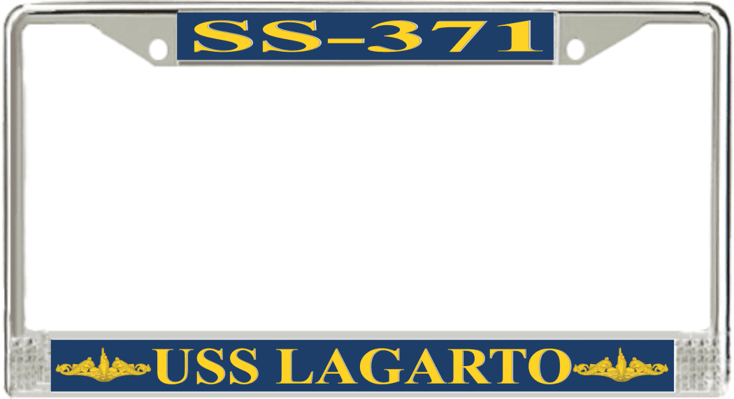 USS Lagarto SS-371 License Plate Frame This USS Lagarto SS-371 License Plate Frame is proudly made in the USA at our facilities in Scottsboro, Alabama. Each Frame features top and bottom sublimated design strips that are poly coated for a protective gloss finish. Please check your state and local regulations for compatibility of these frames for use on your vehicle.