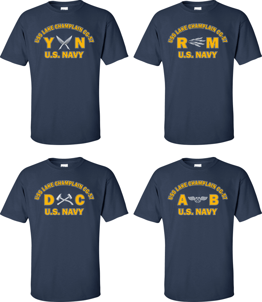 Due to disruptions in supply chains, this design will be embroidered on a Champion, Gildan, Jerzees or comparable brand.Proudly display your ship and rate with our top quality USS LAKE CHAMPLAIN CG-57 Rates t-shirts, sweatshirts, and hoodies. These fine U.S. Navy apparel items will make you the envy of your veteran buddies, or will make a fine gift! Our USS LAKE CHAMPLAIN CG-57 shirts are proudly printed in the USA!