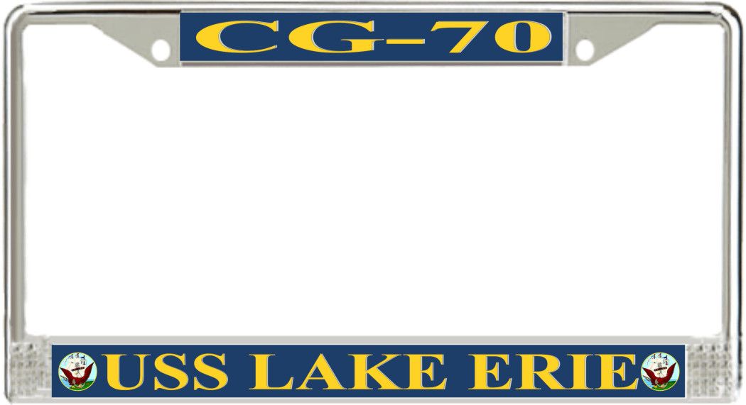 USS Lake Erie CG-70 License Plate FrameThis USS Lake Erie CG-70 License Plate Frame is proudly made in the USA at our facilities in Scottsboro, Alabama. Each of our MilitaryBest U.S. Navy Frames feature top and bottom Poly Coated Aluminum strips that are printed using sublimation which gives these quality automobile military frames a beautiful high gloss finish.