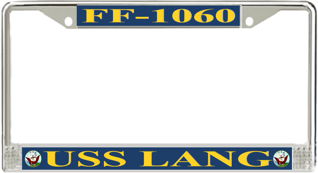USS Lang FF-1060 License Plate FrameThis USS Lang FF-1060 License Plate Frame is proudly made in the USA at our facilities in Scottsboro, Alabama. Each of our MilitaryBest U.S. Navy Frames feature top and bottom Poly Coated Aluminum strips that are printed using sublimation which gives these quality automobile military frames a beautiful high gloss finish.